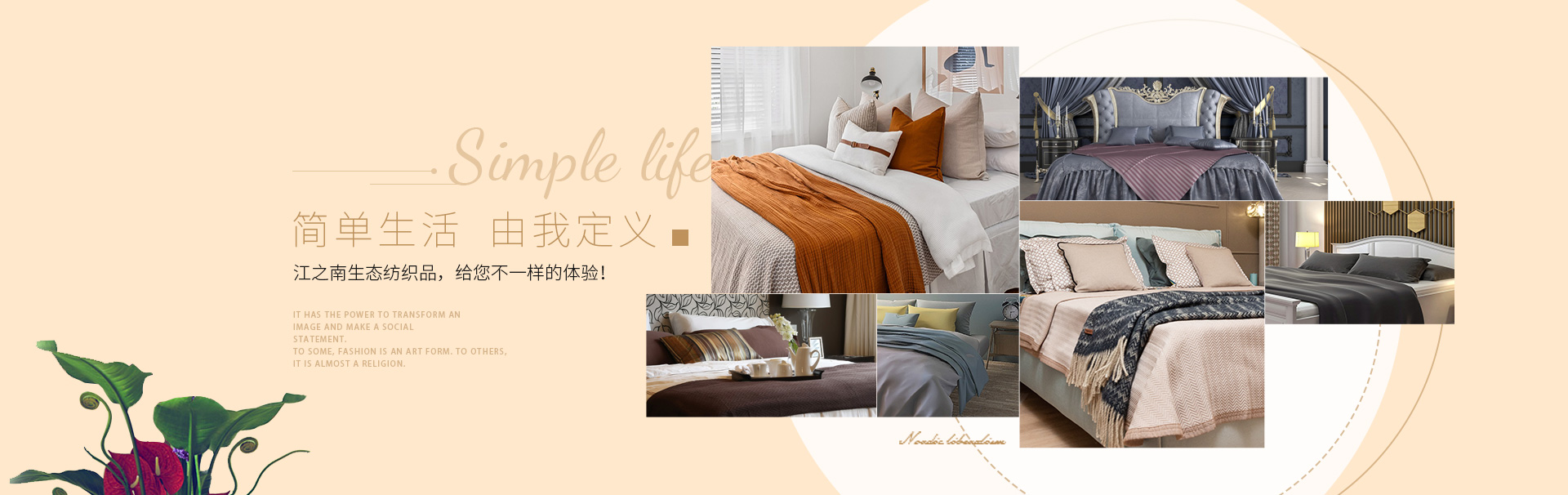 南通是中國家紡之都,江之南生態(tài)家紡是南通家紡行業(yè)的一家領(lǐng)軍企業(yè),是以床上用品,家紡制品,生態(tài)紡織,睡眠系統(tǒng),高端皮革制品,為一體的綜合性生態(tài)家紡企業(yè),公司成立2018年,住落于世界家紡之都南通,隨著時代的發(fā)展,科技進步,高端新型科技材料運用于:軍工、航空航天及民用領(lǐng)域,公司獨立研發(fā)銀釬維材料運用到現(xiàn)代高端家紡,絲綢制品當(dāng)中。...